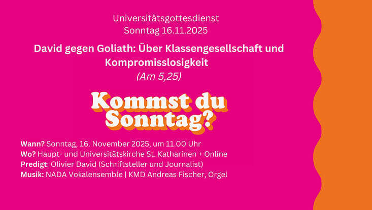 Herzlich laden wir Sie und euch ein zum Universitätsgottesdienst am kommenden Sonntag, 16. November 2025, um 11 Uhr in der Haupt- und Universitätskirche St. Katharinen (Katharinenkirchhof 1, 20457 Hamburg)!